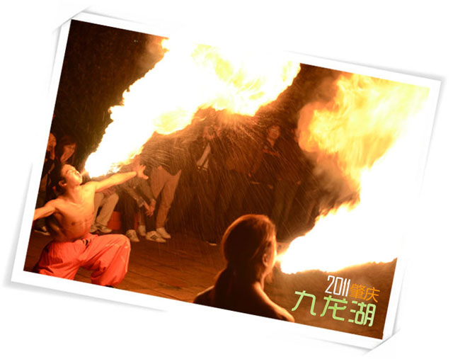 晚上佤族的篝火晚會,佤族人和大家載歌載舞,玩得不亦樂乎。噴火表演,烈火奪目,火焰很高,表演精彩不斷,贏得了大家陣陣掌聲。