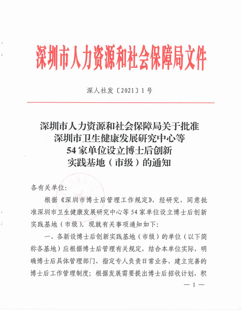 近日,深圳市人力資源和社會保障局發布“關于批準深圳市衛生健康發展研究中心等54家單位設立博士后創新實踐基地(市級)”的通知(深人社發〔2021〕1號)。經深圳人力資源和社會保障局研究批準,深圳市遠行科技股份有限公司等54家單位設立博士后創新實踐基地。