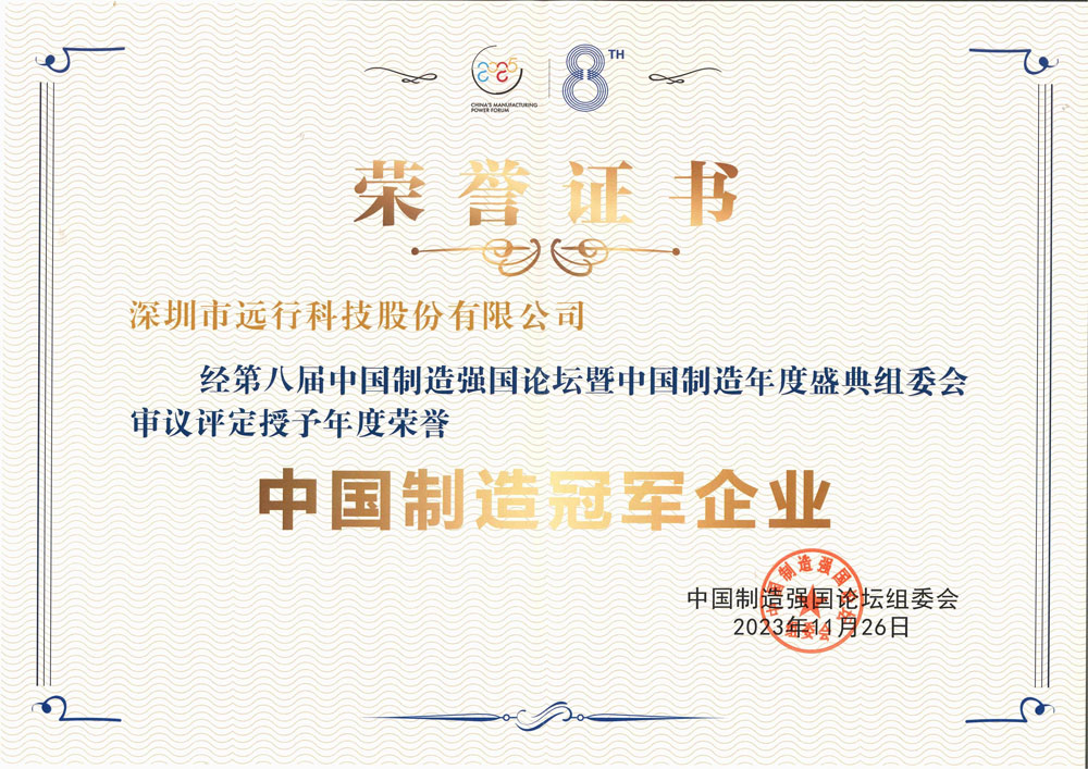 2023中國制造年度盛典中,遠行科技喜獲“中國制造冠軍企業”即“隱形冠軍”榮譽。這是對遠行科技先進技術、綜合實力的高度肯定,充分展現了遠行科技在制造領域的實踐成果。