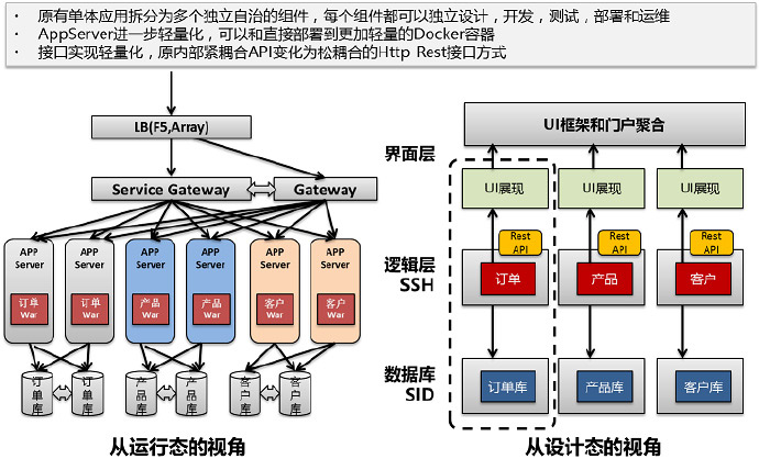 很多單體應用有時候也在強調是基于組件化和模塊化的開始思路開發的,或者說是基于SOA架構開發,那從運行態和設計態分別來看的話可以看到。