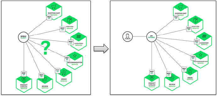 那么對于復雜的各個模塊間的點對點調用,就需要有一個類似ESB總線的中間件將這些接口服務統一管理起來,以實現對服務注冊,安全,流控,日志審計,消息,代理和路由的統一管理。而這些轉到微服務架構后即是由微服務網關來完成。